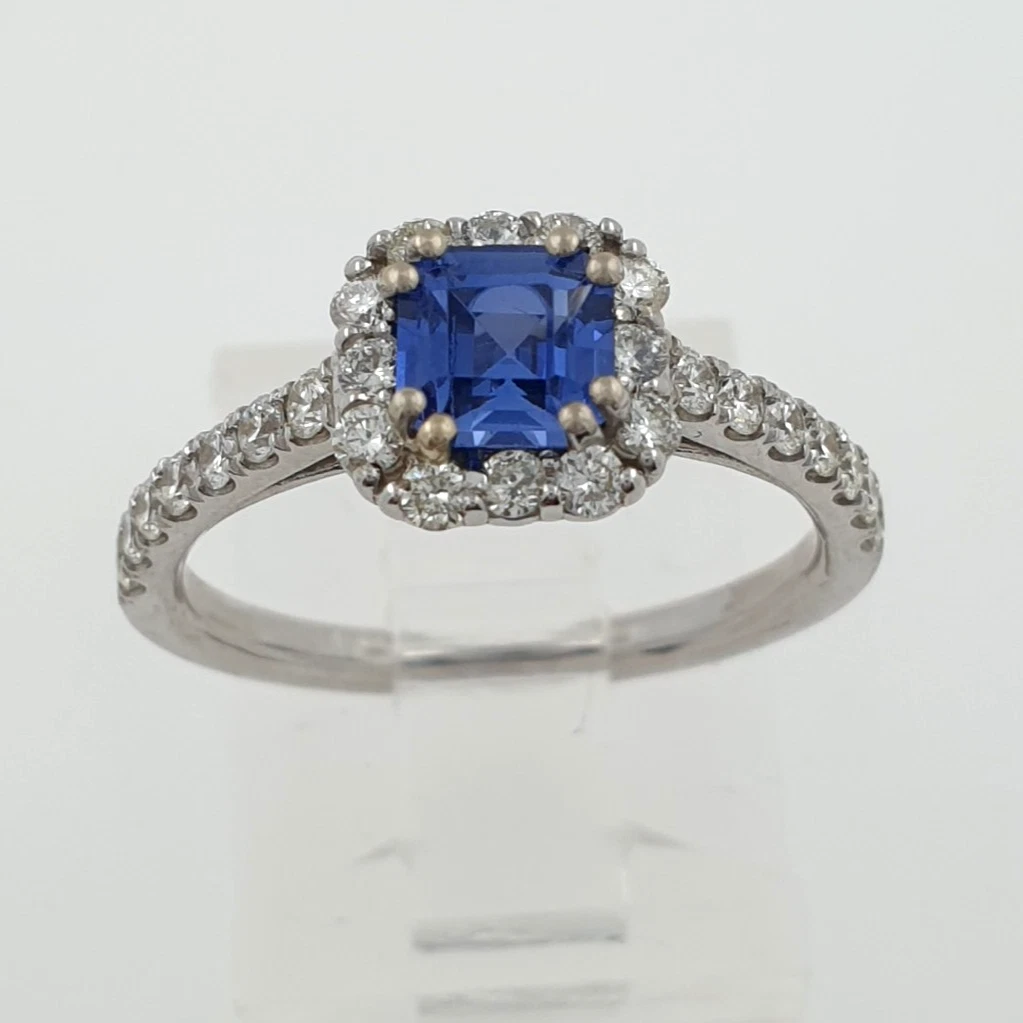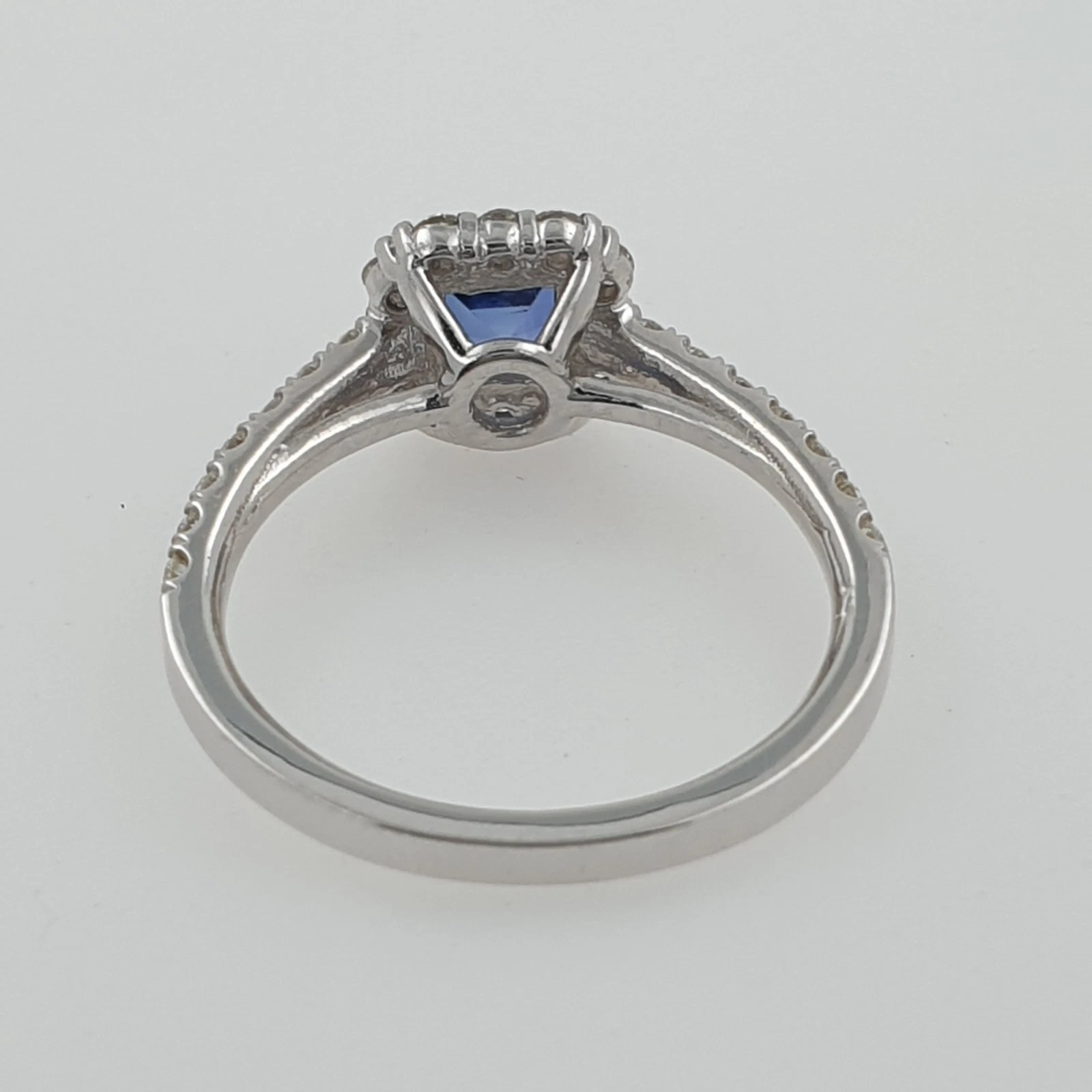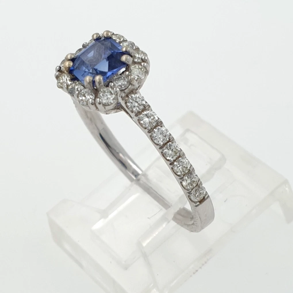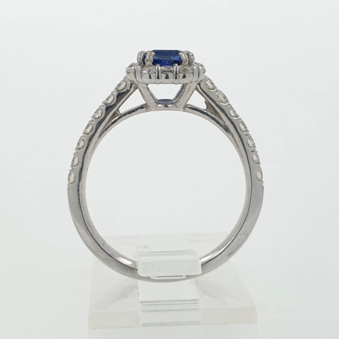 14k White Gold Ring with Natural Diamonds and Lab Sapphire