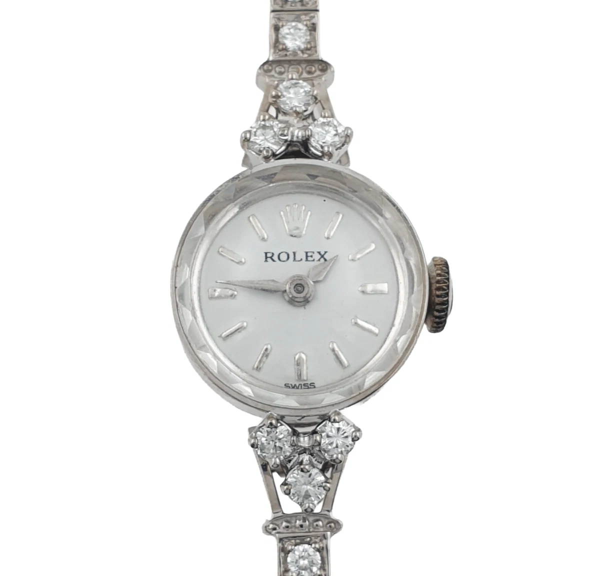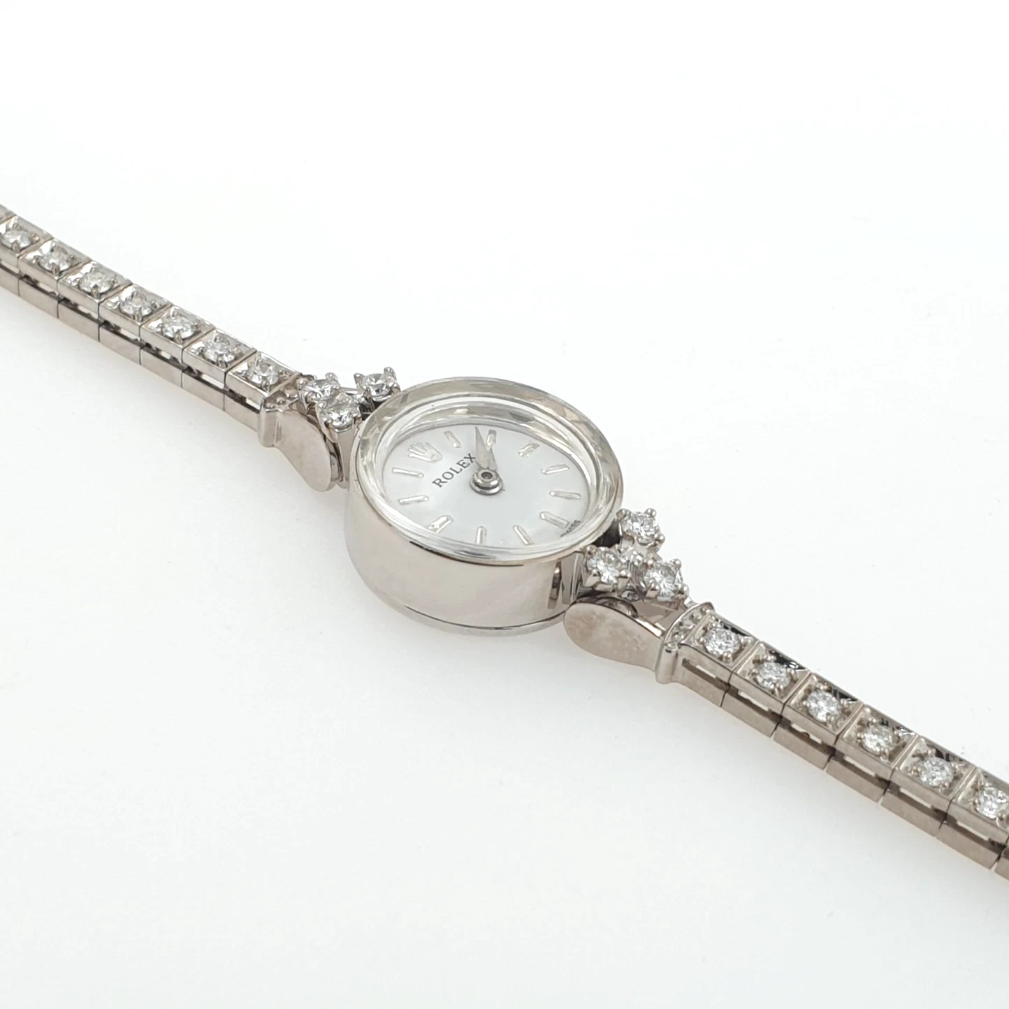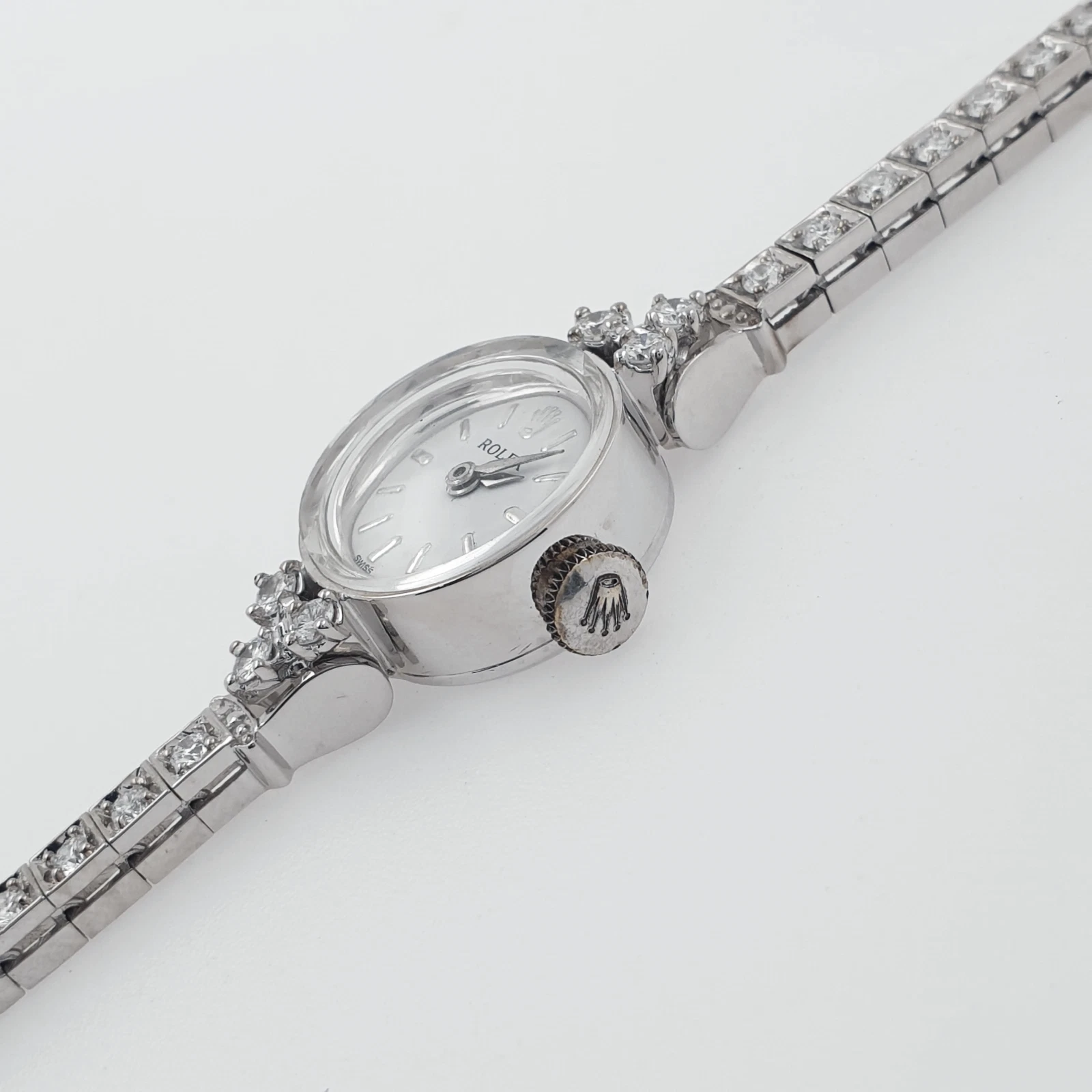 Lady Rolex Vintage Manual Watch 14k White Gold with Natural Diamonds 1950s