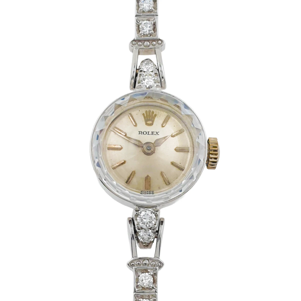 Lady Vintage Rolex Manual Watch 14k White Gold with Diamonds Circa 1950s