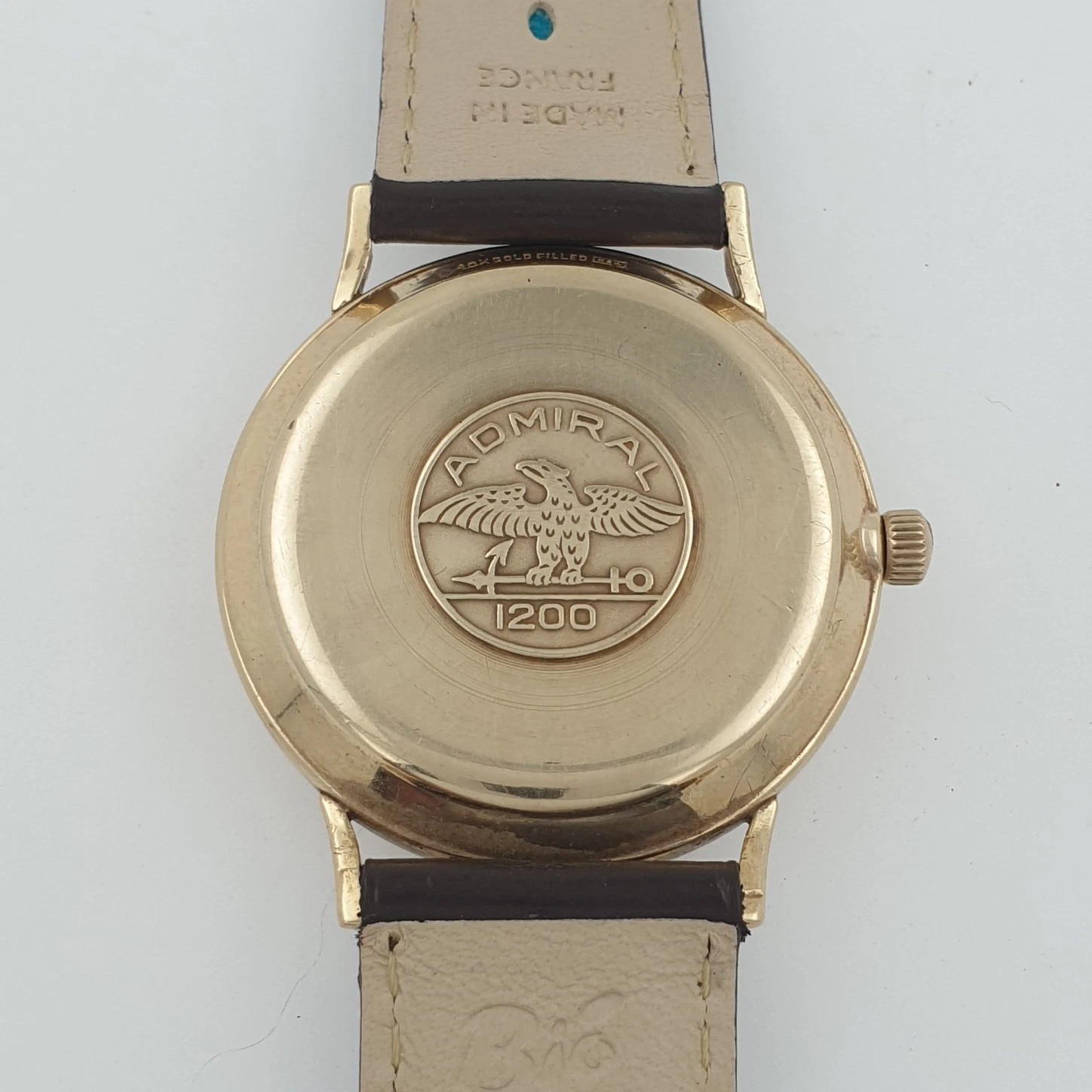 Vintage Longines Admiral Mystery Dial 14k Gold Filled Watch. The watch could be from the 1960s to the 1980s. The style of this watch is very special, as instead of a hour hand, it contains a rotating star that marks the hour.