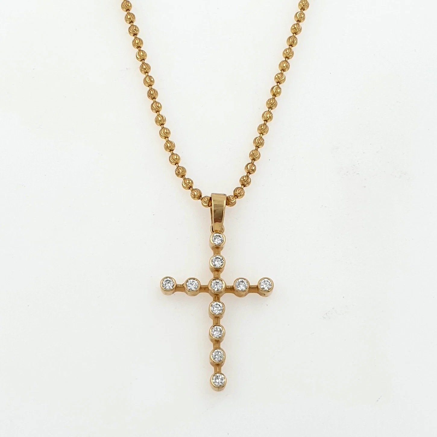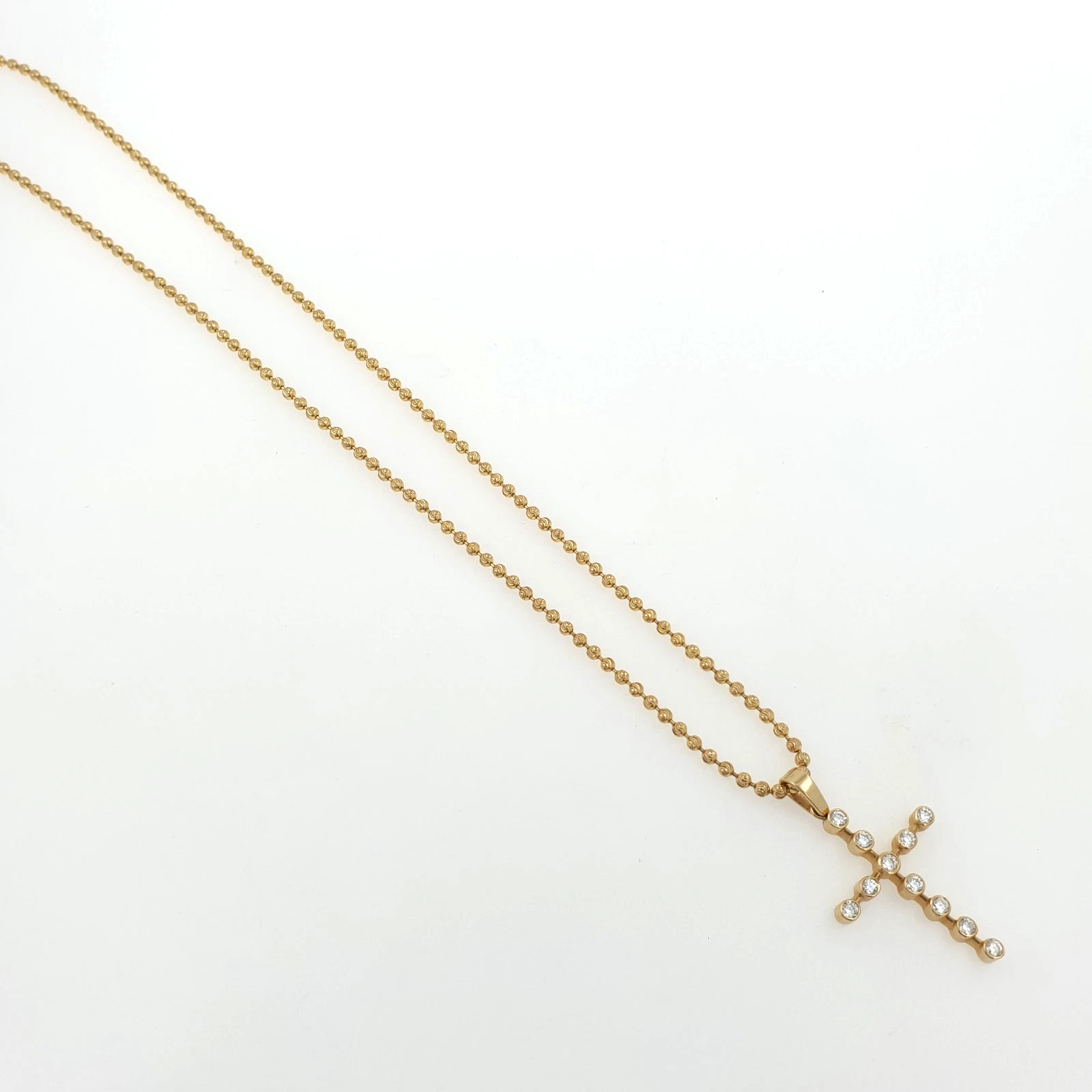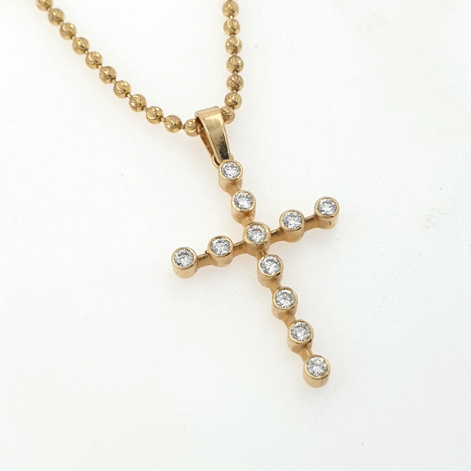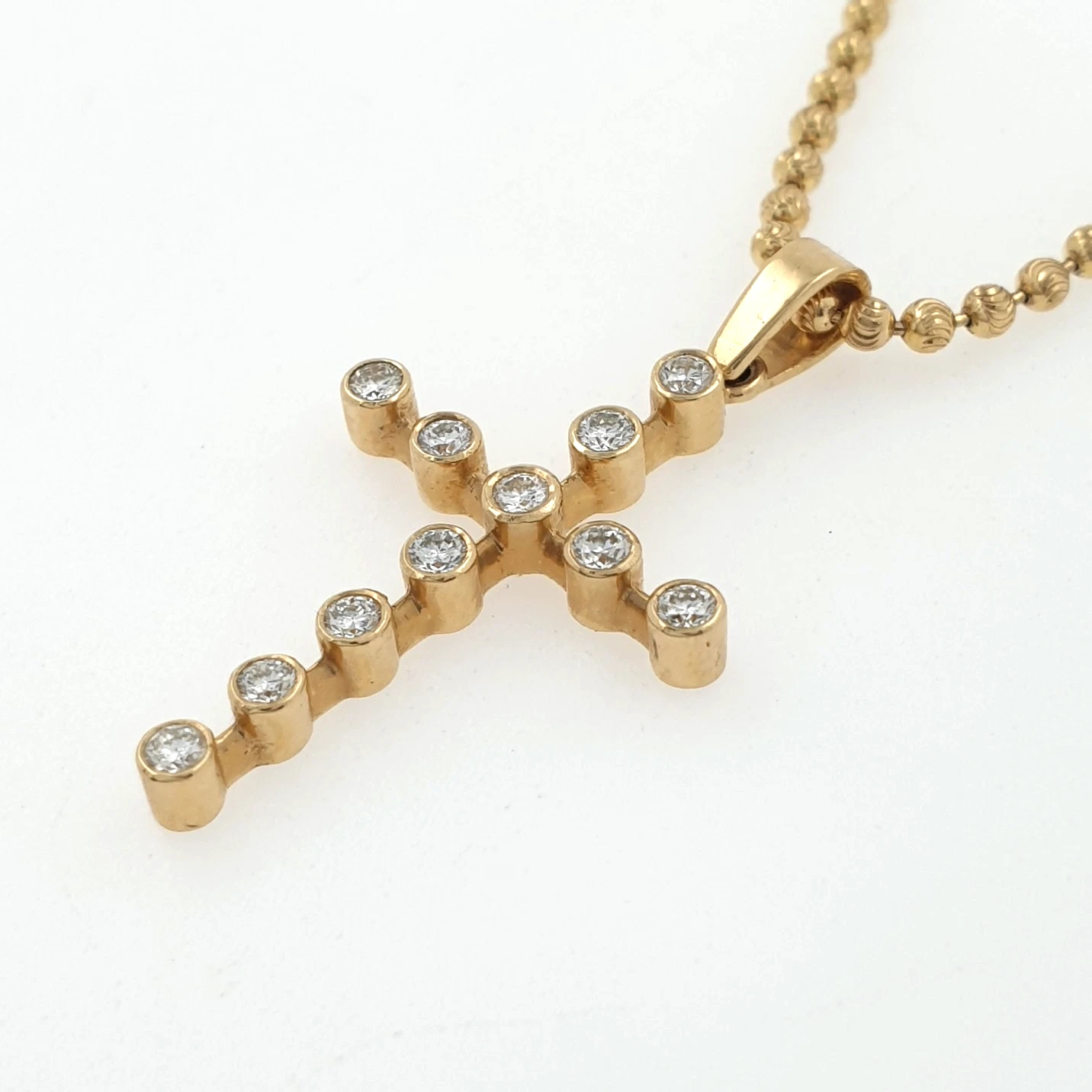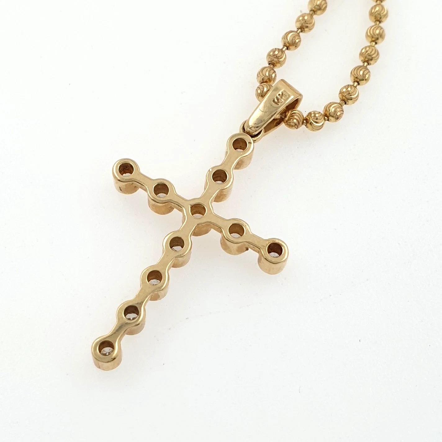 Vintage Cross Pendant Necklace with Natural Diamonds 14k Yellow Gold