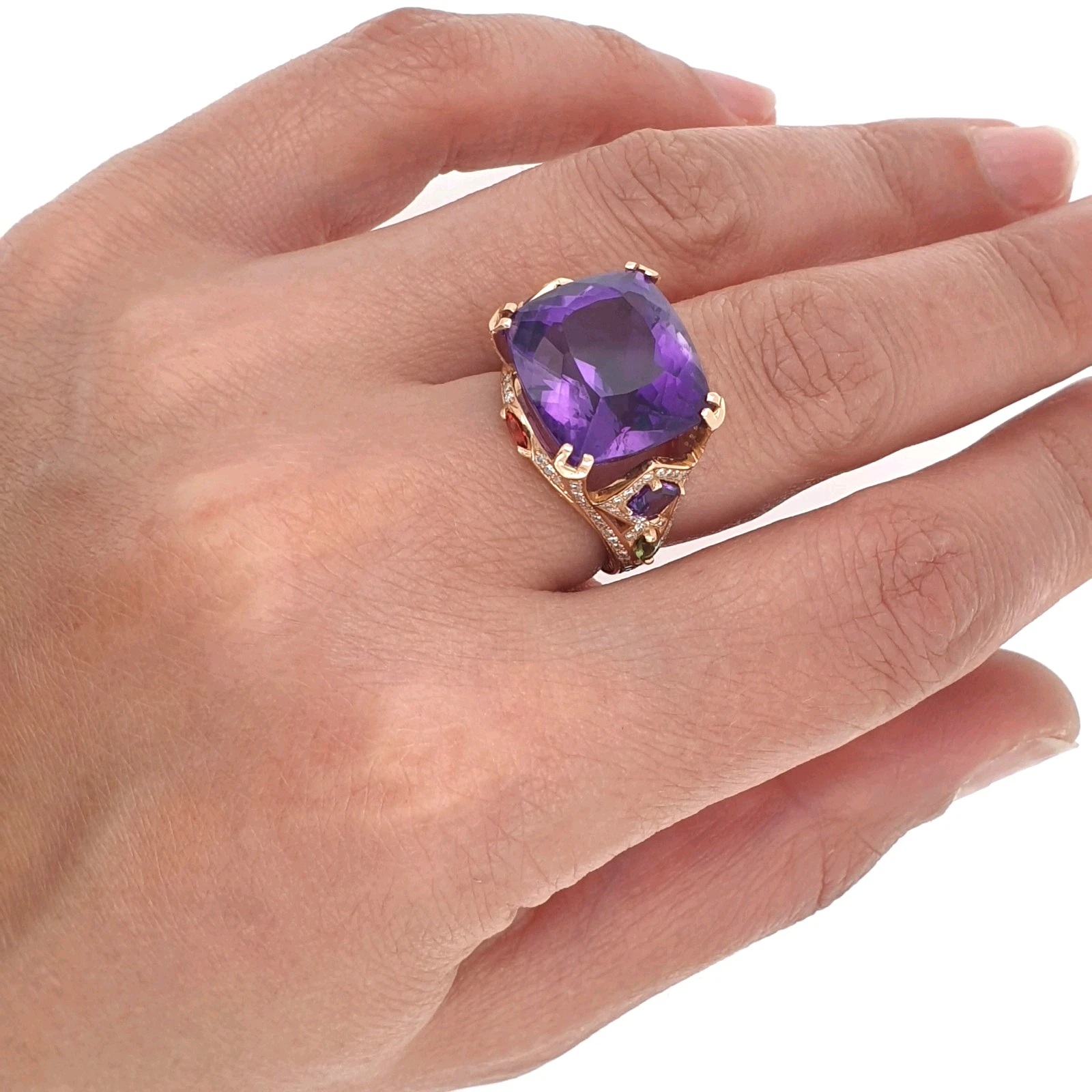 Petunia Cocktail Ring 14k Rose Gold 15ct Amethyst & 1.26ct Natural Diamonds